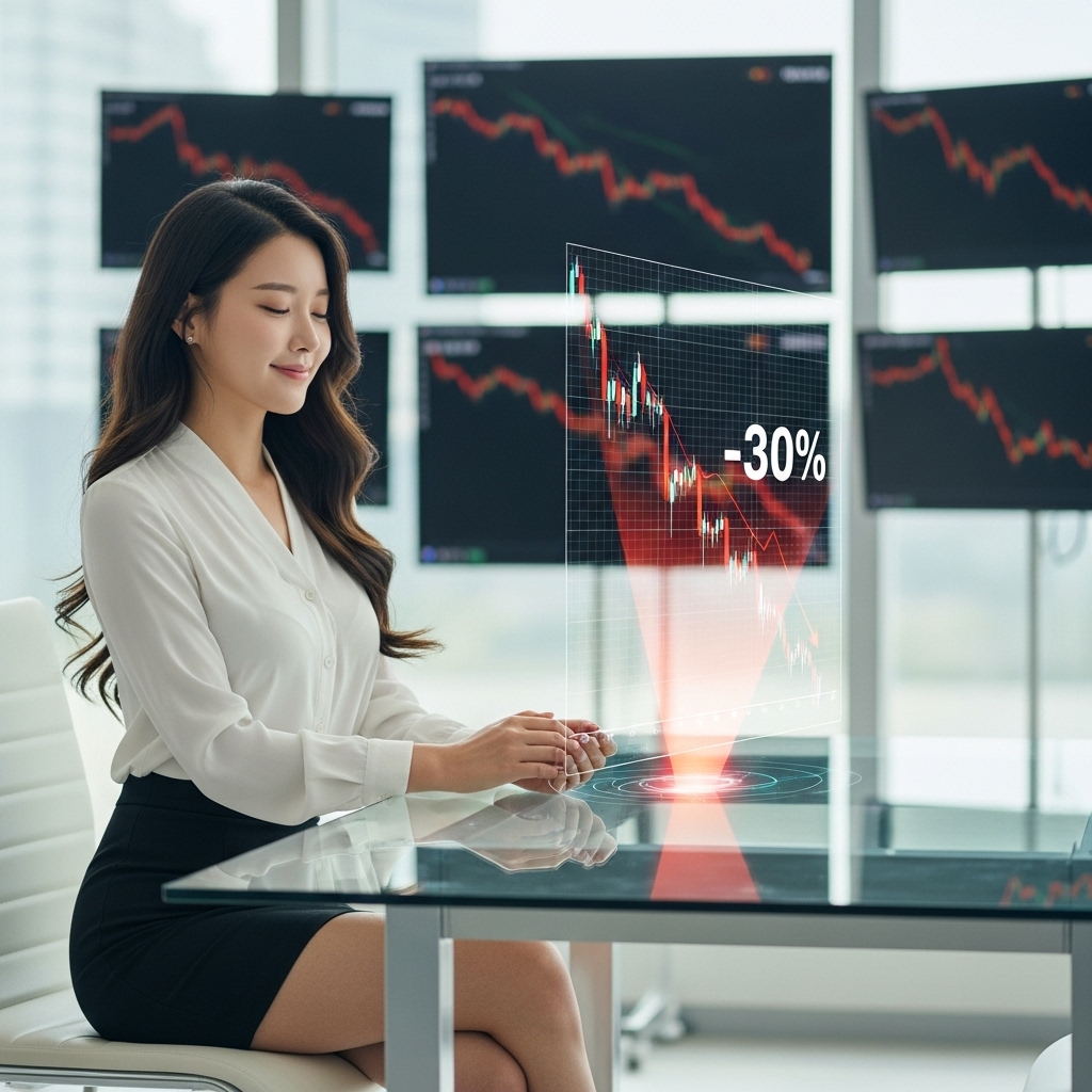 잠에서 깨어 무심코 앱을 열었는데, 온통 시퍼런 숫자들이 당신을 반깁니다. 어제까지 +10%였던 수익률은 간데없고, 계좌에는 **-10%... -20%... 심하면 -30%**라는 믿기 힘든 숫자가 찍혀있습니다.