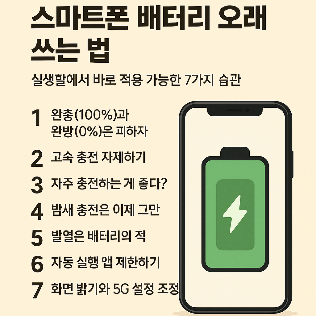 오늘은 스마트폰을 더 오래, 더 효율적으로 사용하는 실생활 배터리 관리 꿀팁 7가지를 알려드리겠습니다.