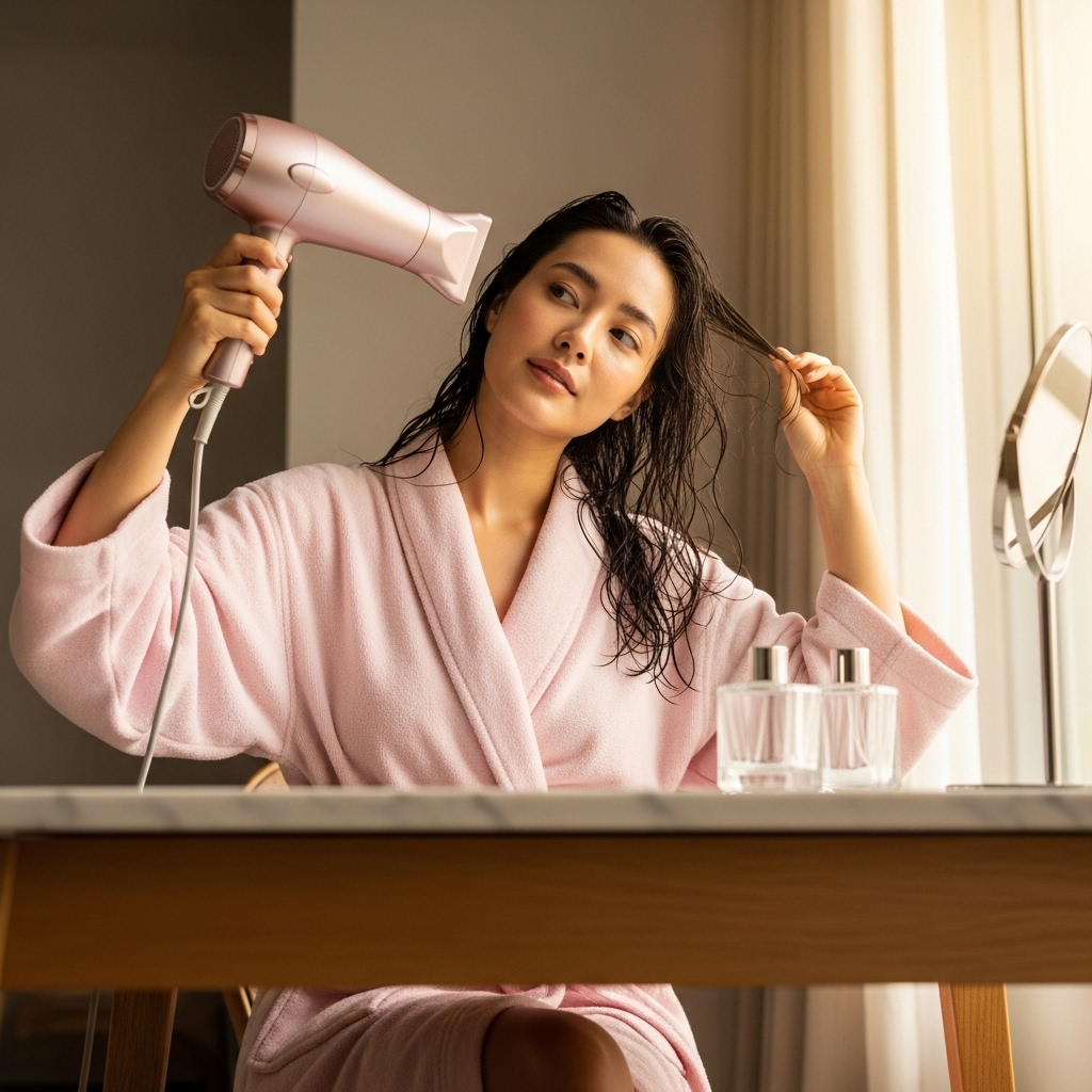 - 80%만 말리기: 두피가 뽀송해졌다면 성공입니다. 모발 끝부분은 약간의 물기가 남아있어도 자연스럽게 마르니, 두피 건조에 집중하세요.