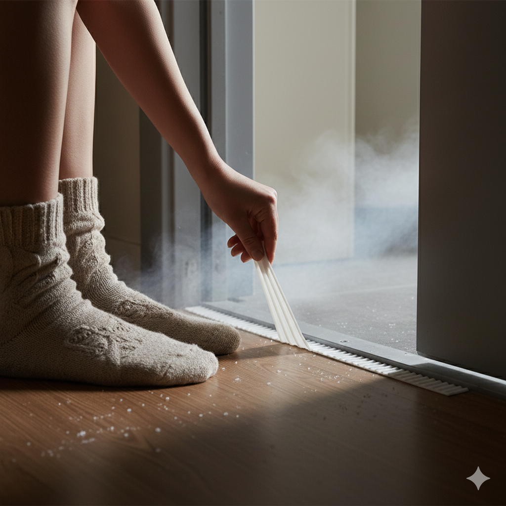 알고 보니 문제는 보일러가 아니었습니다. 창문 틈새와 현관문 아래로 숭숭 들어오는 '황소바람(외풍)' 때문이었죠.
